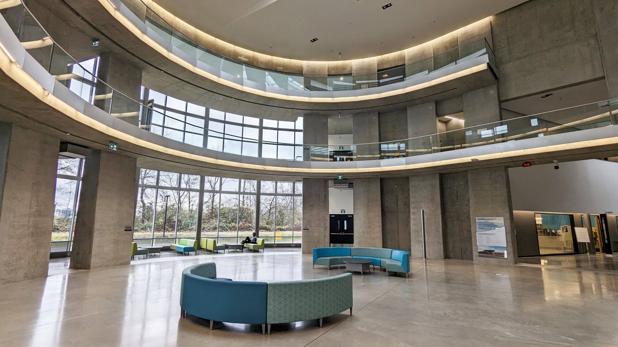 The Aerospace Technology Campus is home to futuristic 2-level Hub with classrooms, hallways, library, boardrooms, cafeteria & flight simulators (new!).