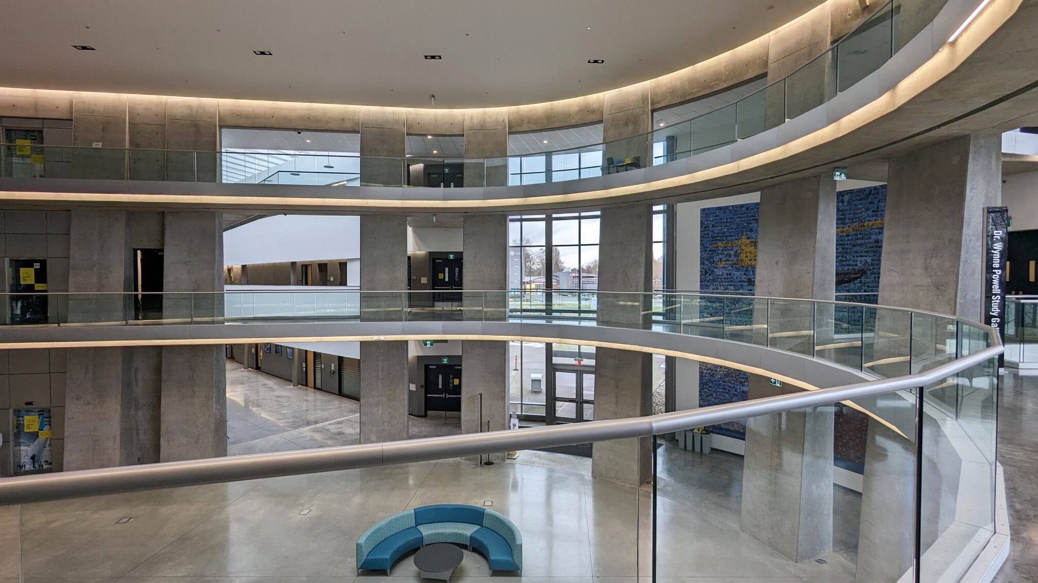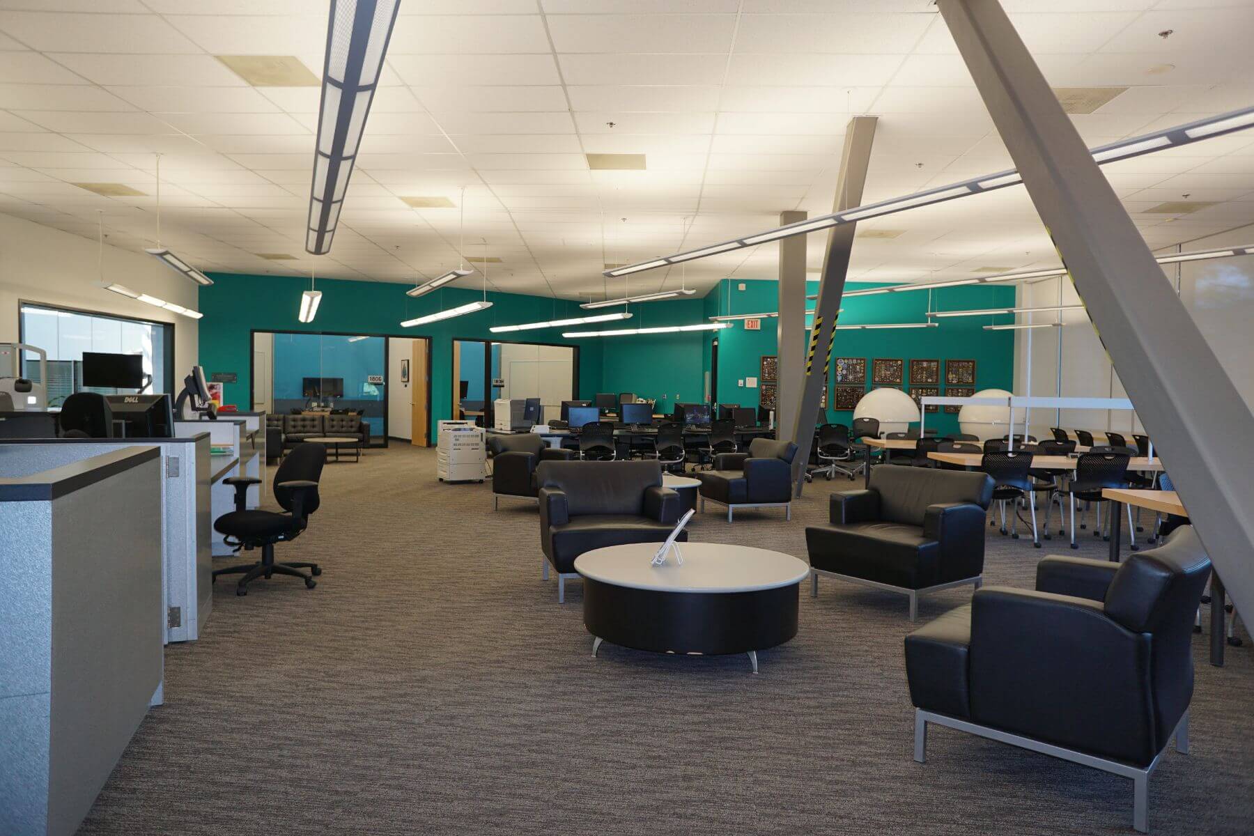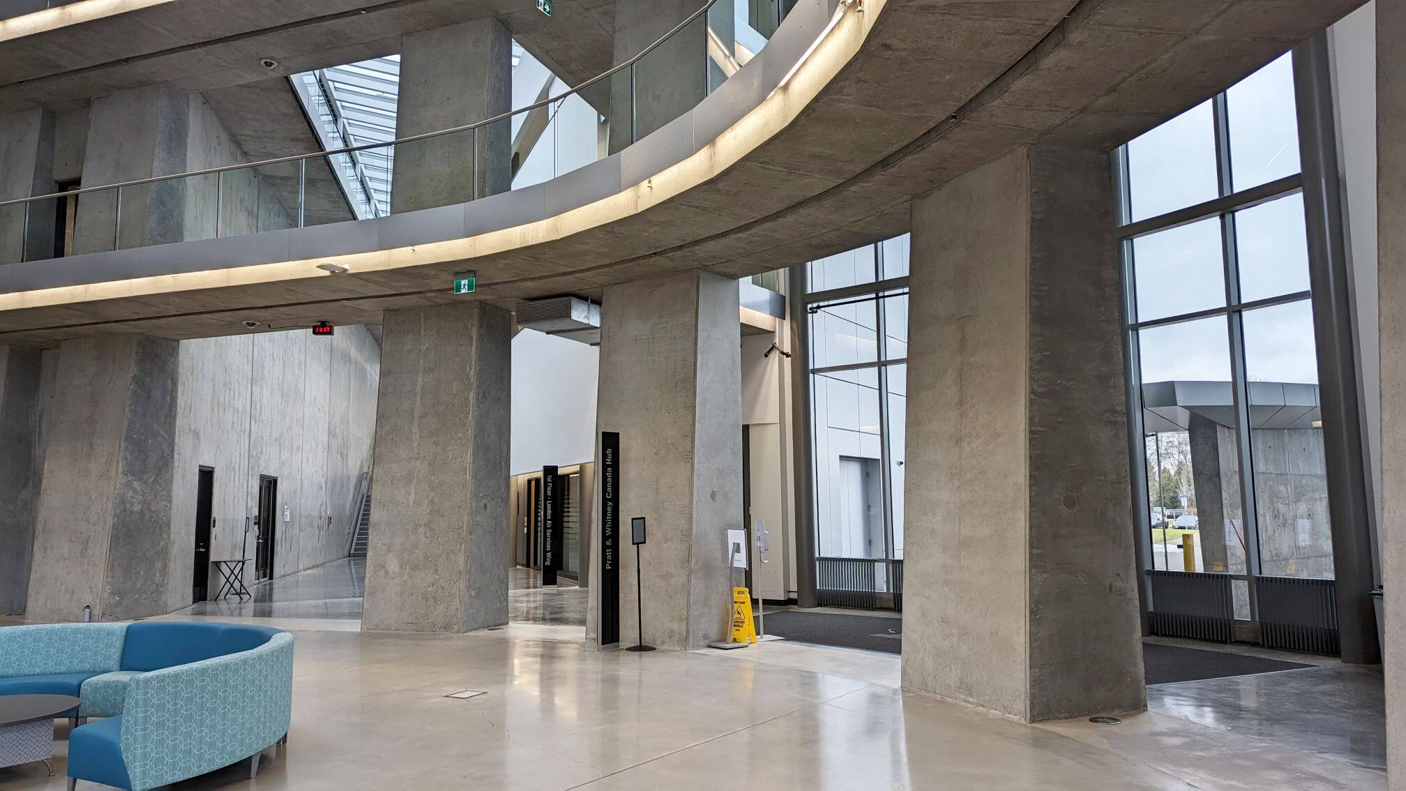The Aerospace Technology Campus is home to futuristic 2-level Hub with classrooms, hallways, library, boardrooms, cafeteria & flight simulators (new!).