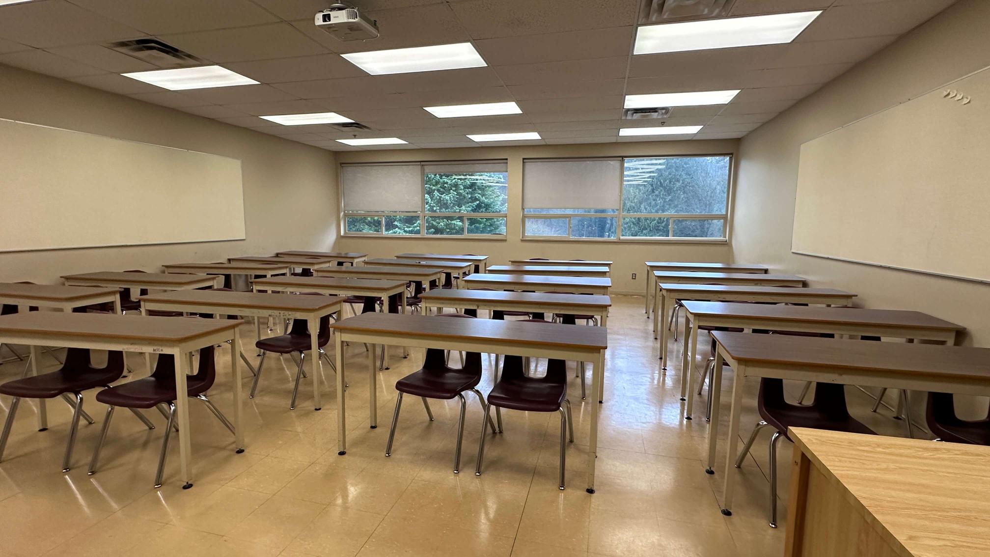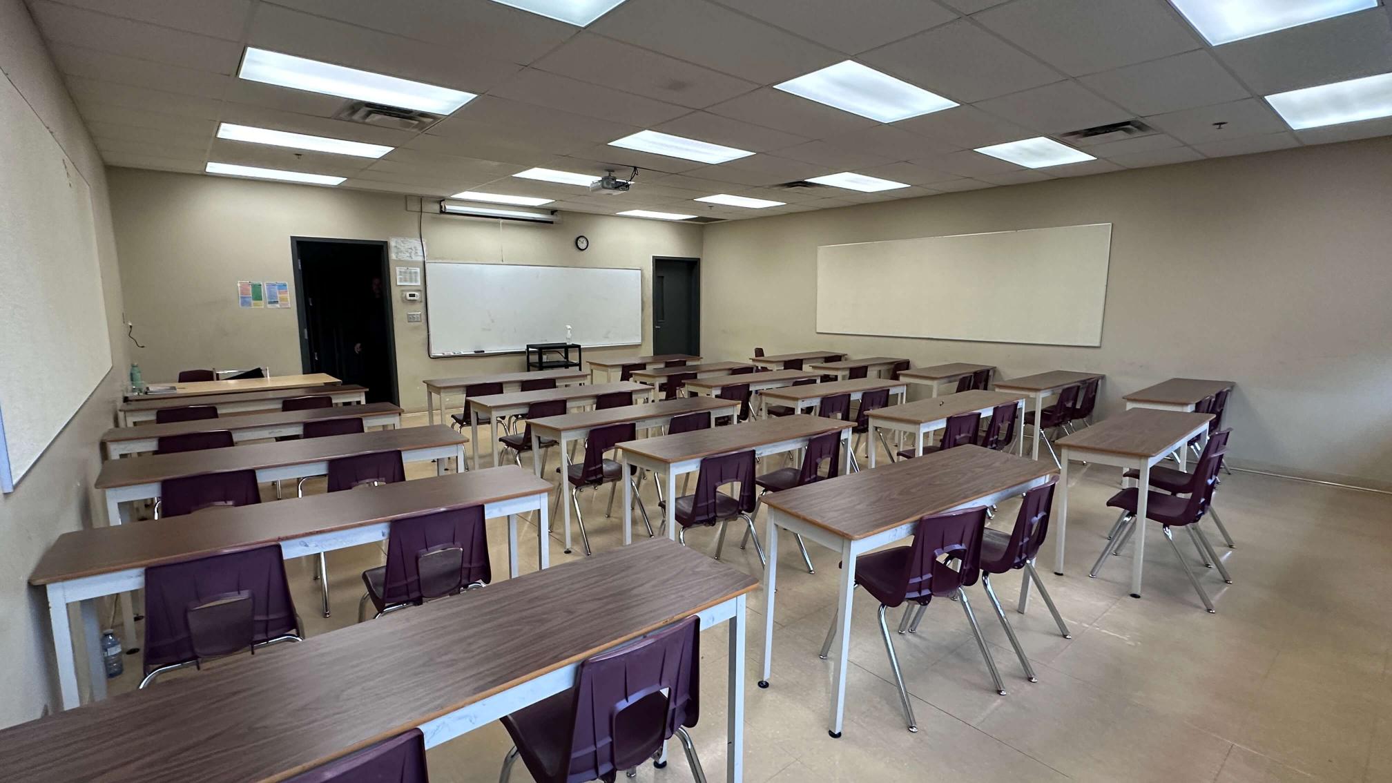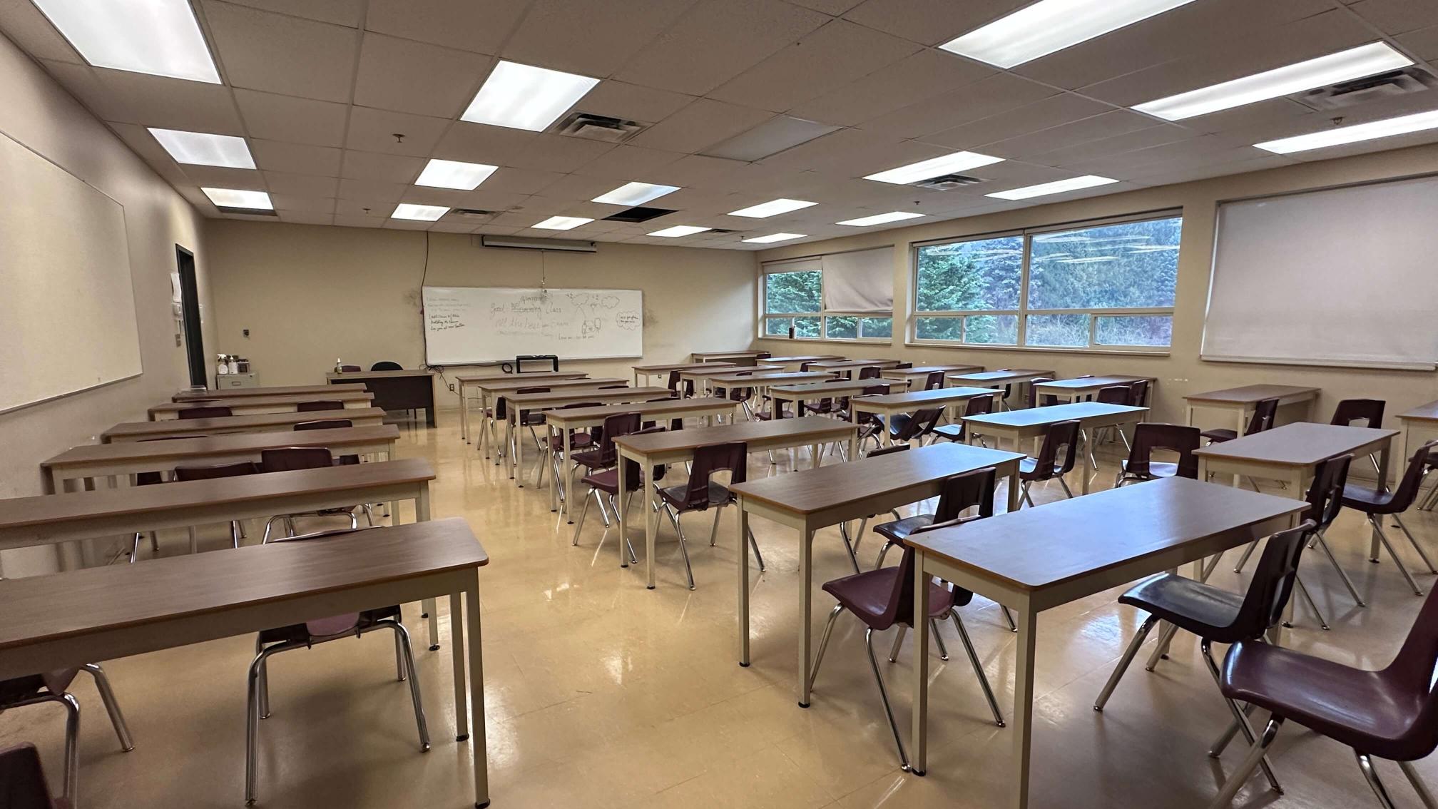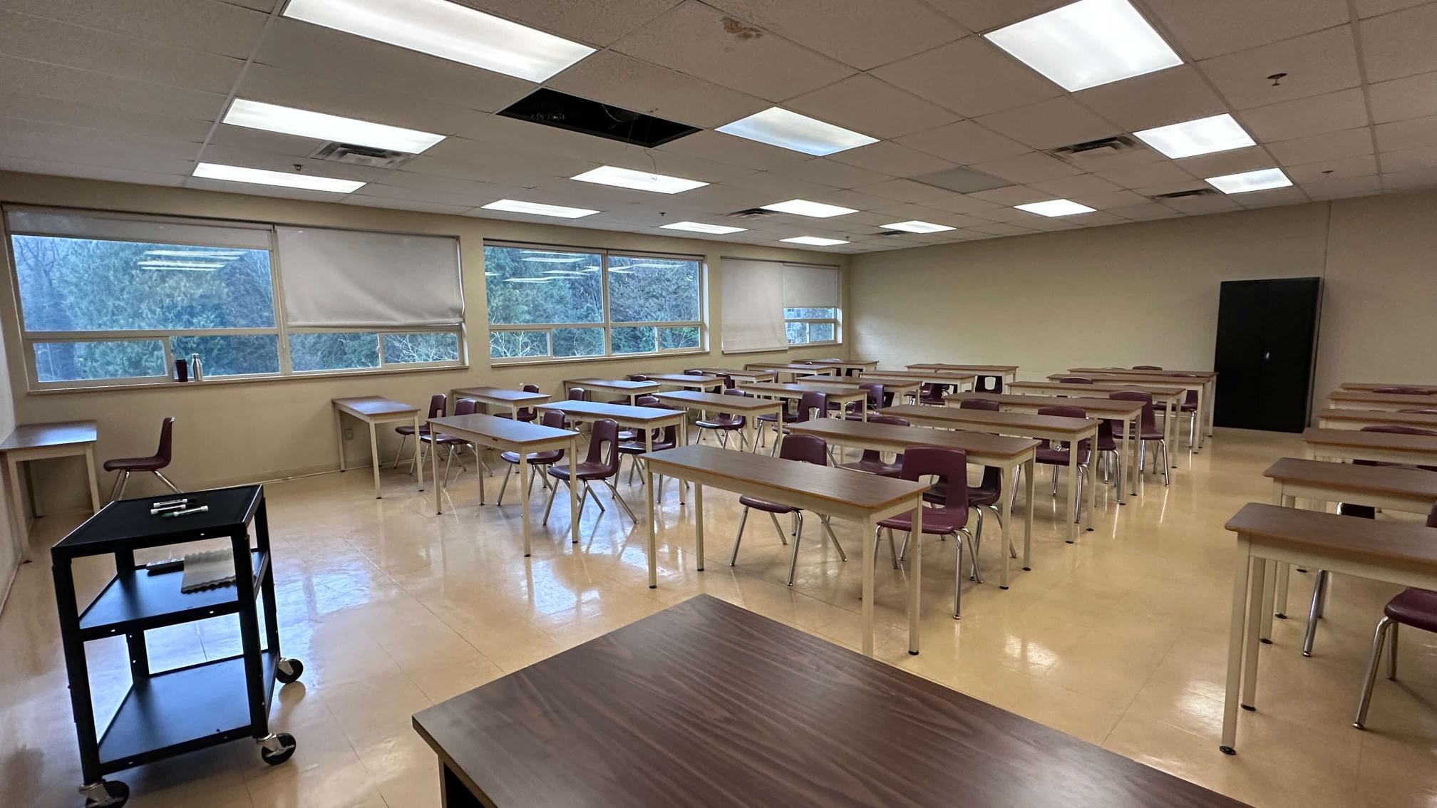 Vacant college campus in Coquitlam, close to Lougheed Town Centre Skytrain. Featuring a gymnasium, labs, a variety of classroom looks, hallways, lockers and on-site parking.
