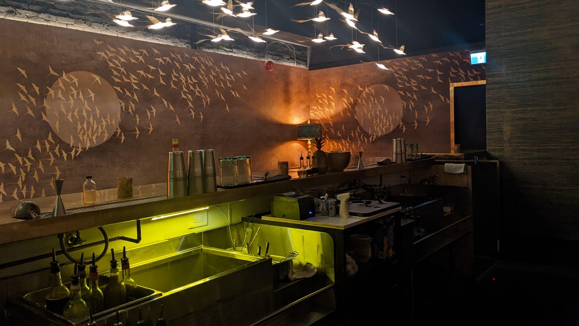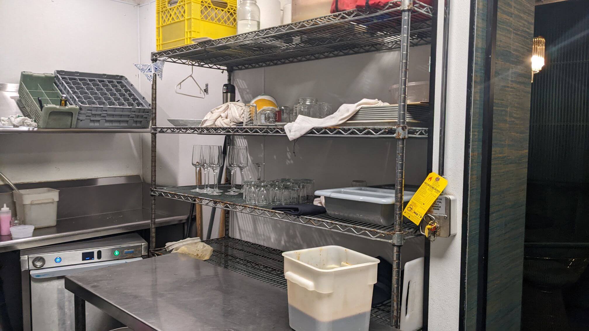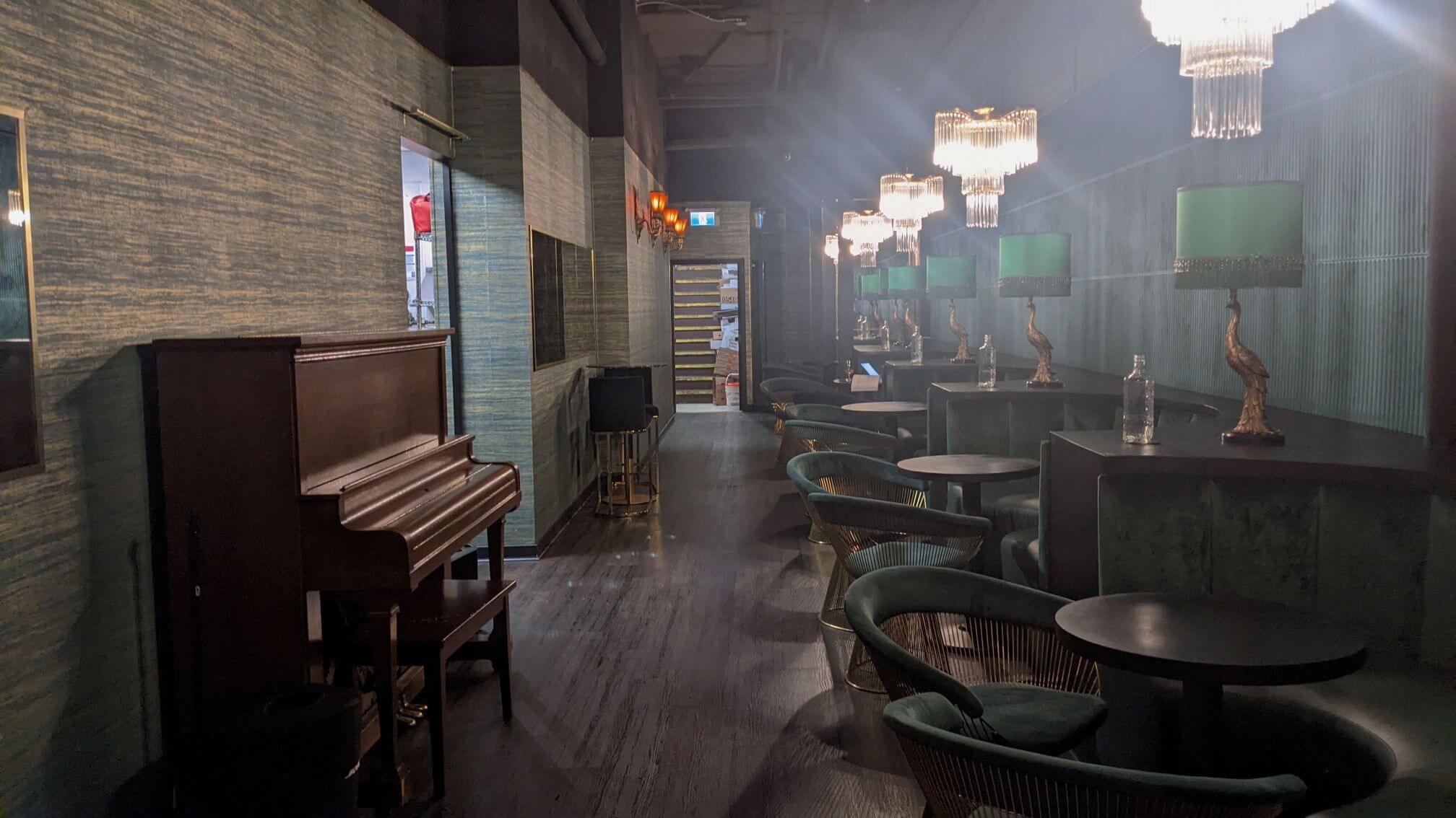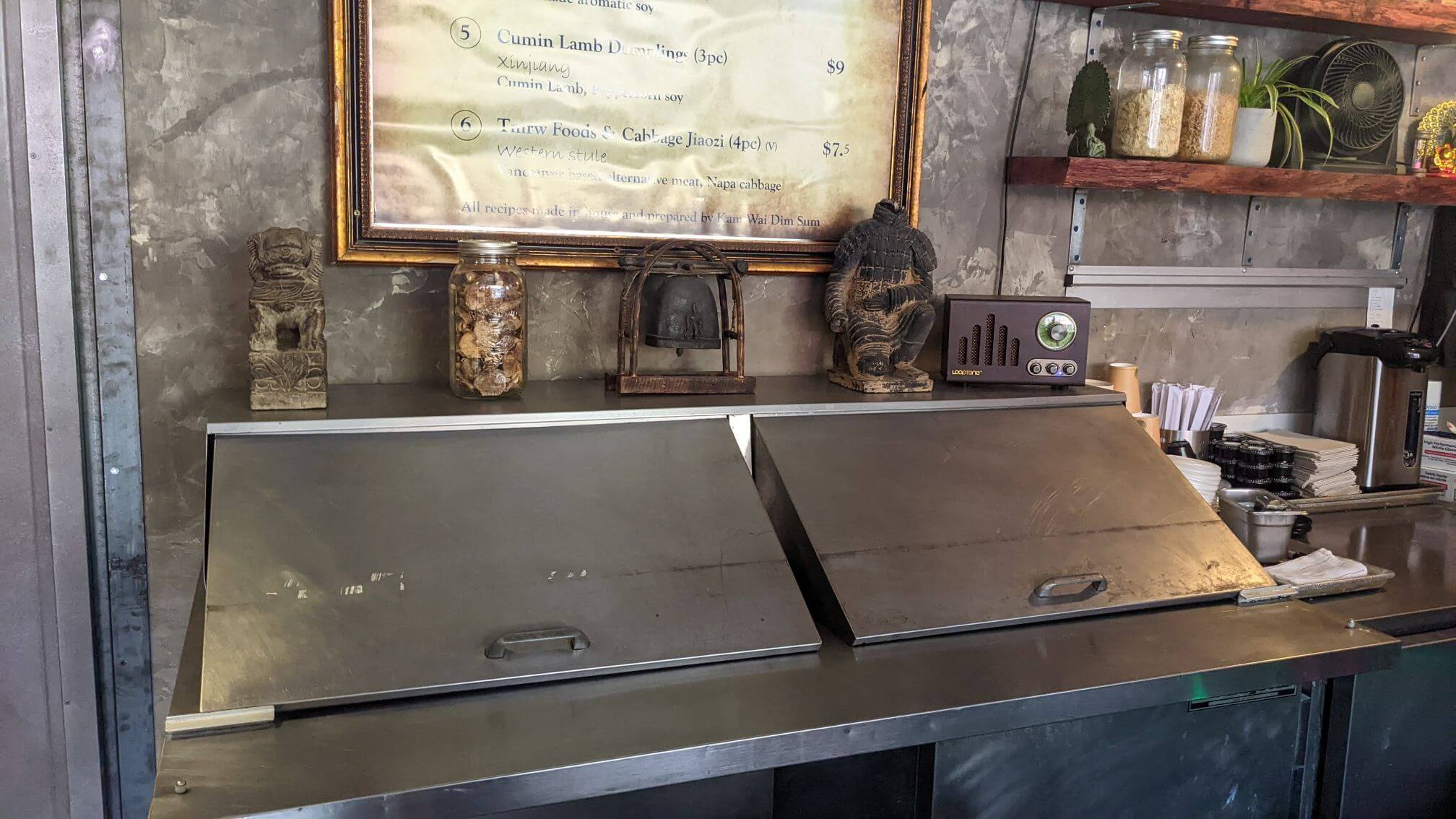 The Blnd Tgr Dumpling shop storefront, with a naval-inspired freezer door leading into the back room. This bar is inspired by the Prohibition speakeasies of Shanghai.