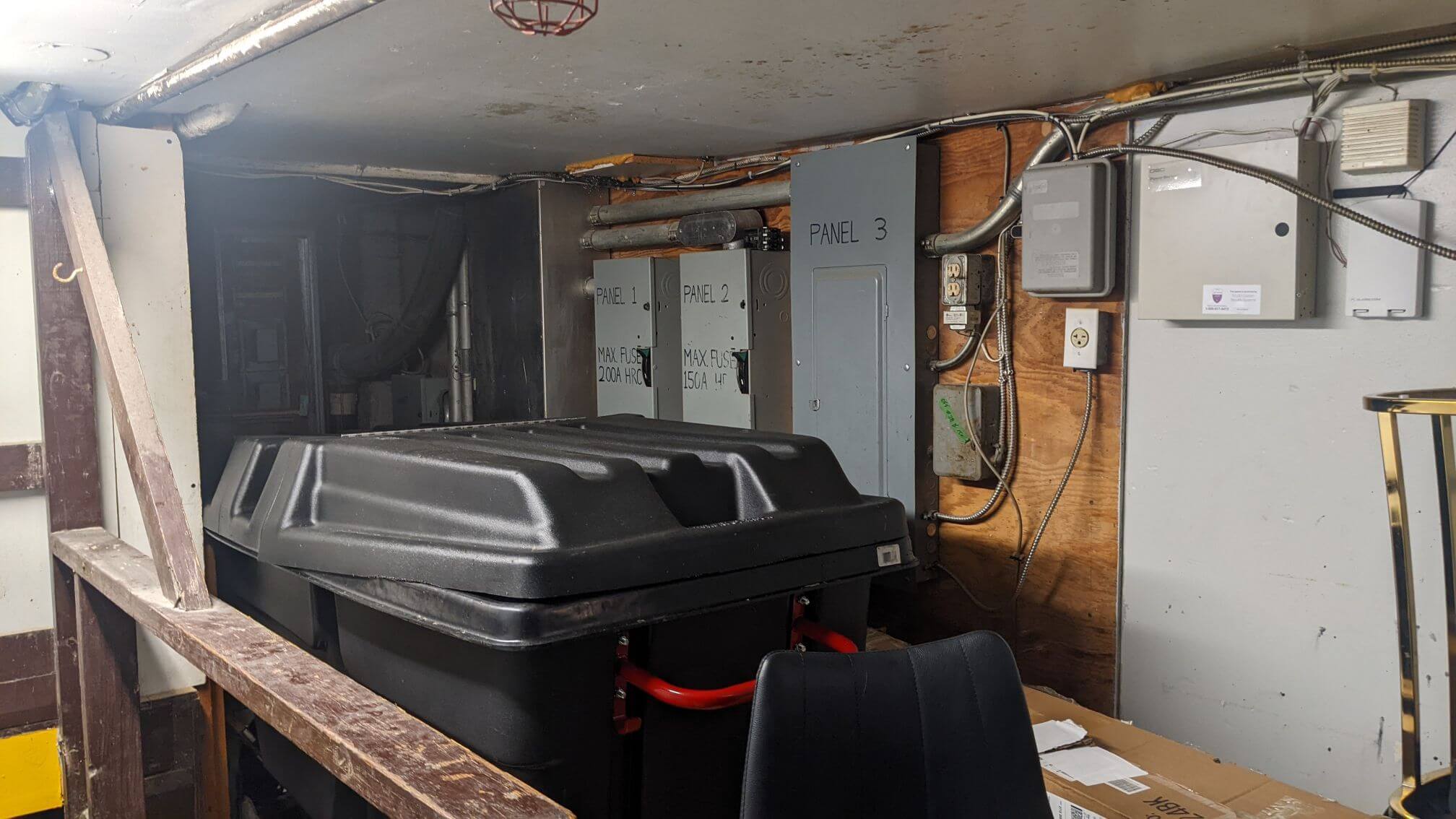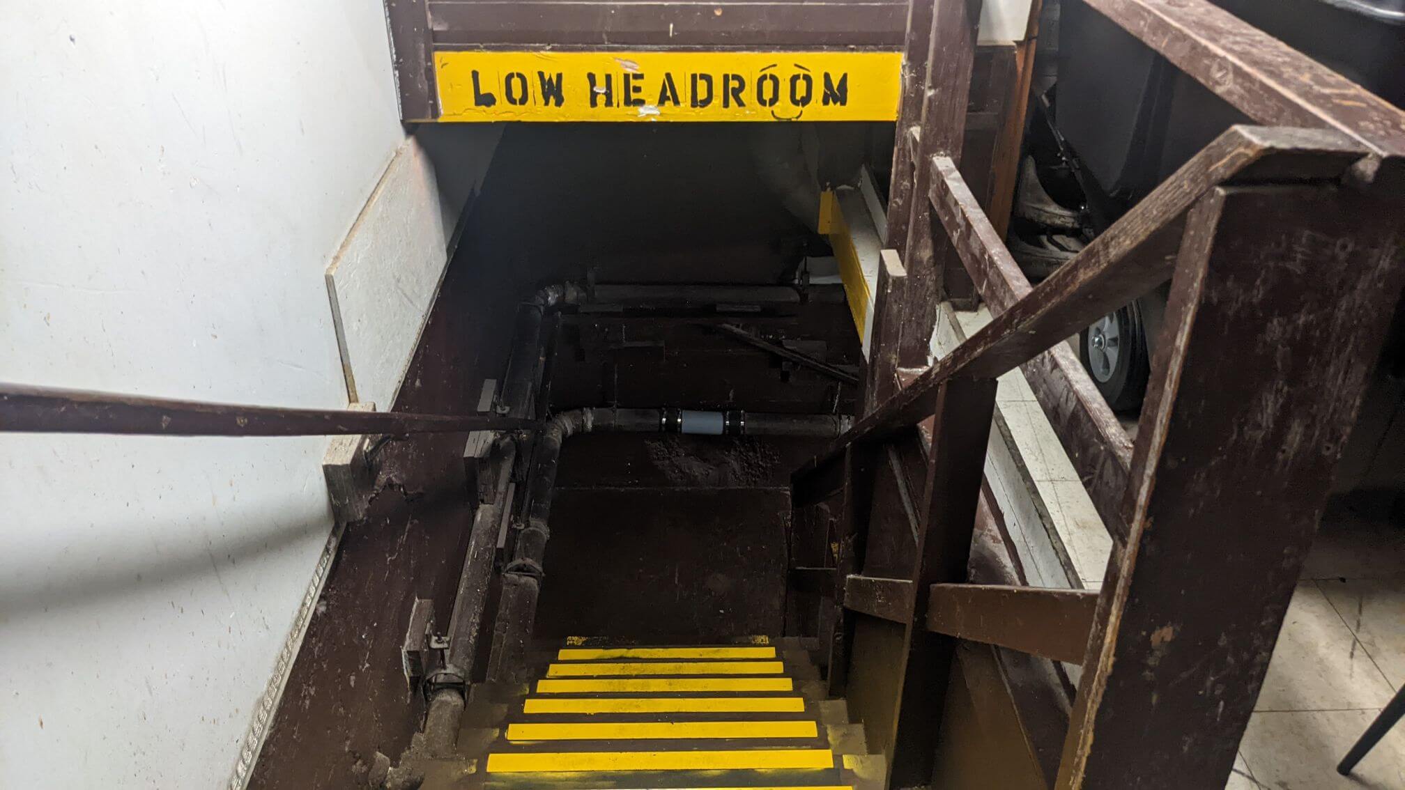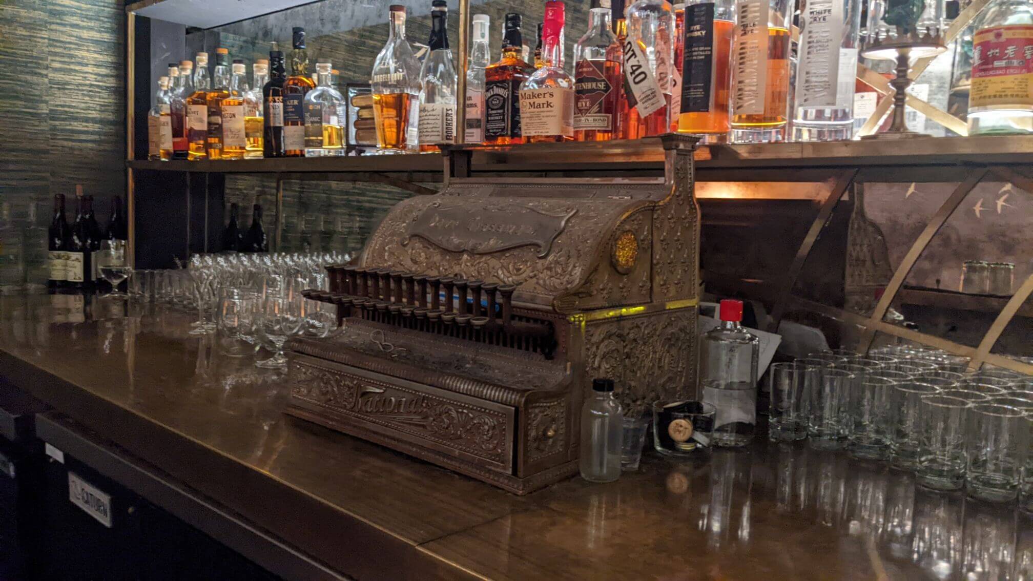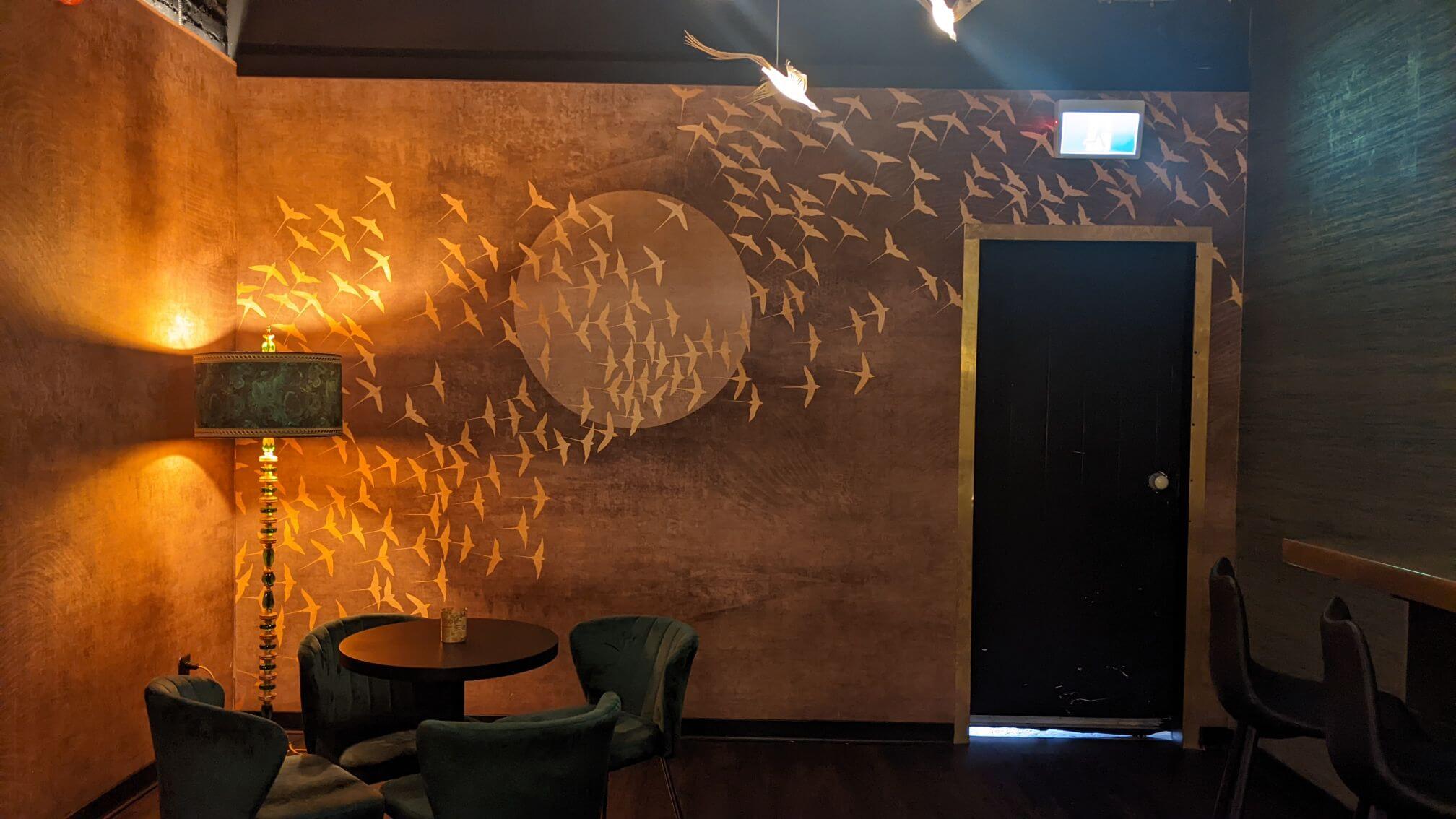 The Blnd Tgr Dumpling shop storefront, with a naval-inspired freezer door leading into the back room. This bar is inspired by the Prohibition speakeasies of Shanghai.